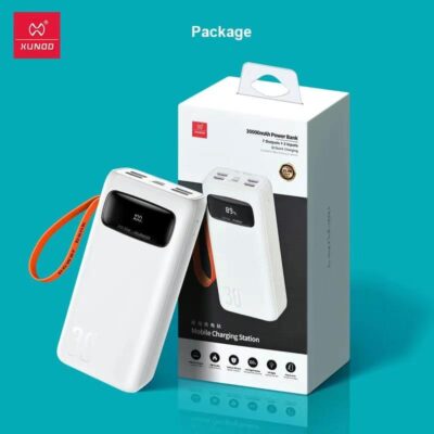 Puissance: 22.5W | Capacité: 20000mAh | Charge rapide | Haute qualité | Sortie Multi-ports | 2 Câbles inclus: Type-C & Lightning