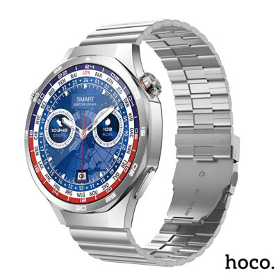 Montre connectée Hoco Appels Bluetooth & Suivi de santé, Bracelet en acier Argent