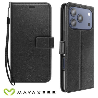 Étui Portefeuille iPhone 17 Pro avec Dragonne - Mayaxess Noir