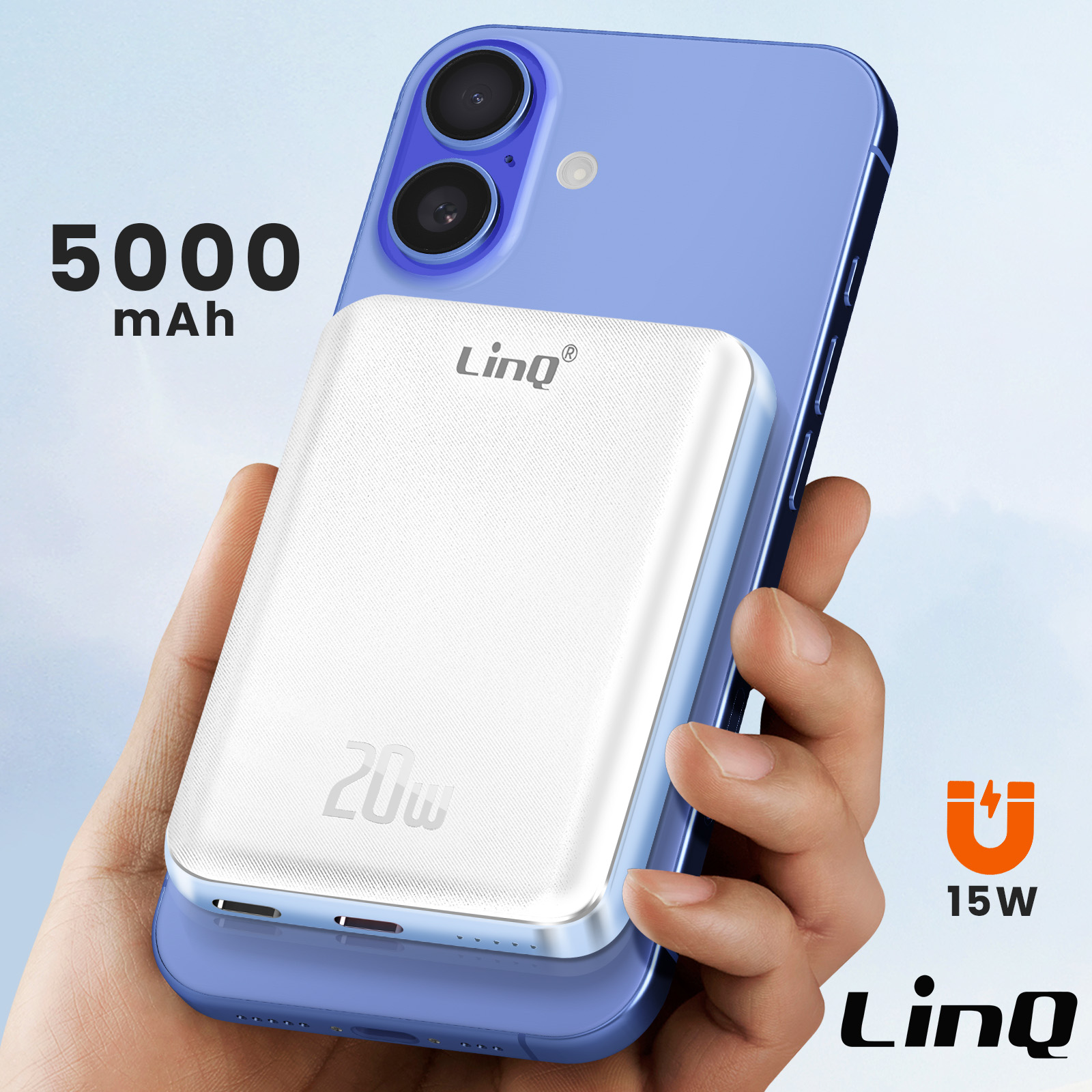 Batterie de Secours iPhone MagSafe 5000 mAh LinQ – Recharge Sans Fil 15W Blanc