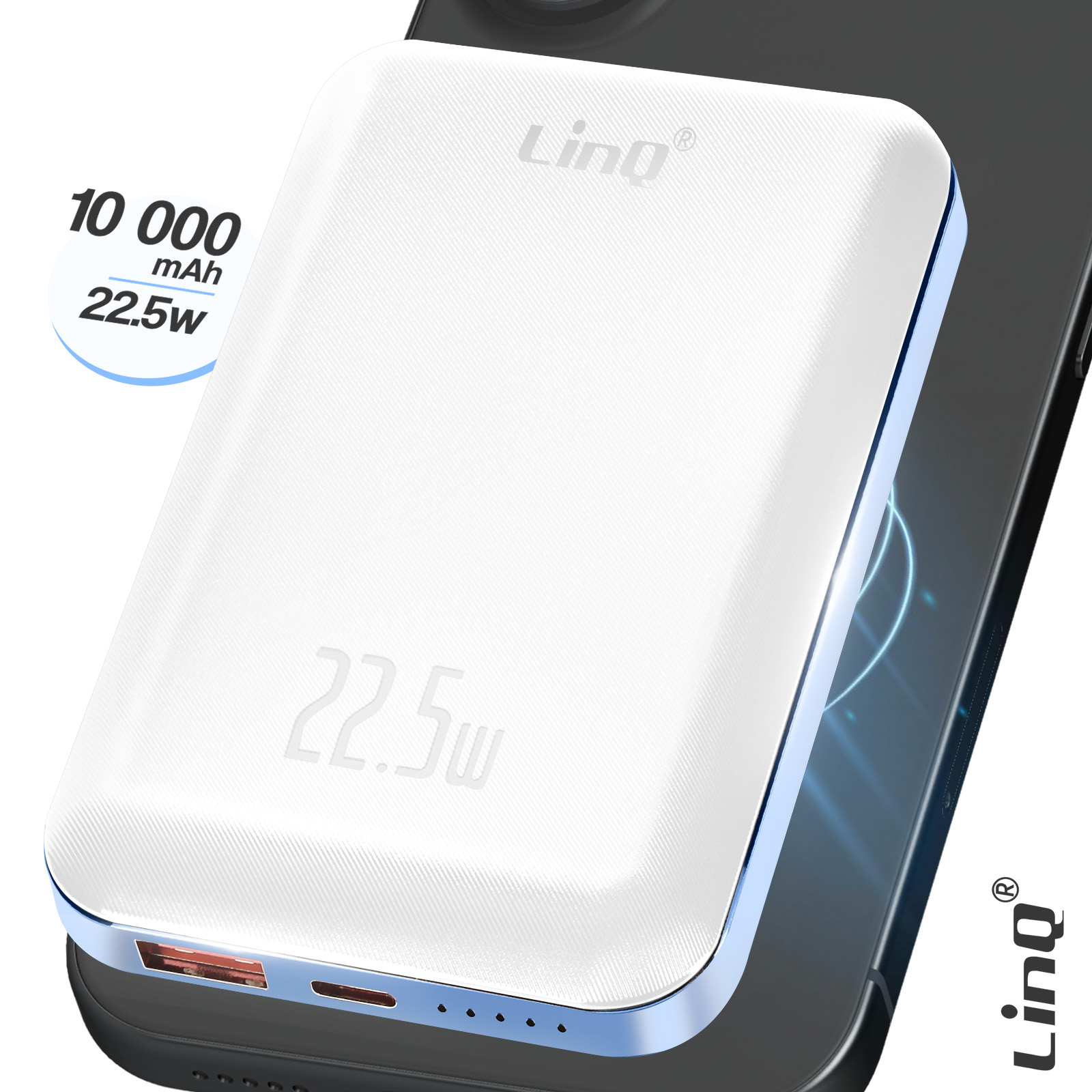 Batterie Externe MagSafe 10000 mAh – Recharge Sans Fil 15W – LinQ Blanc