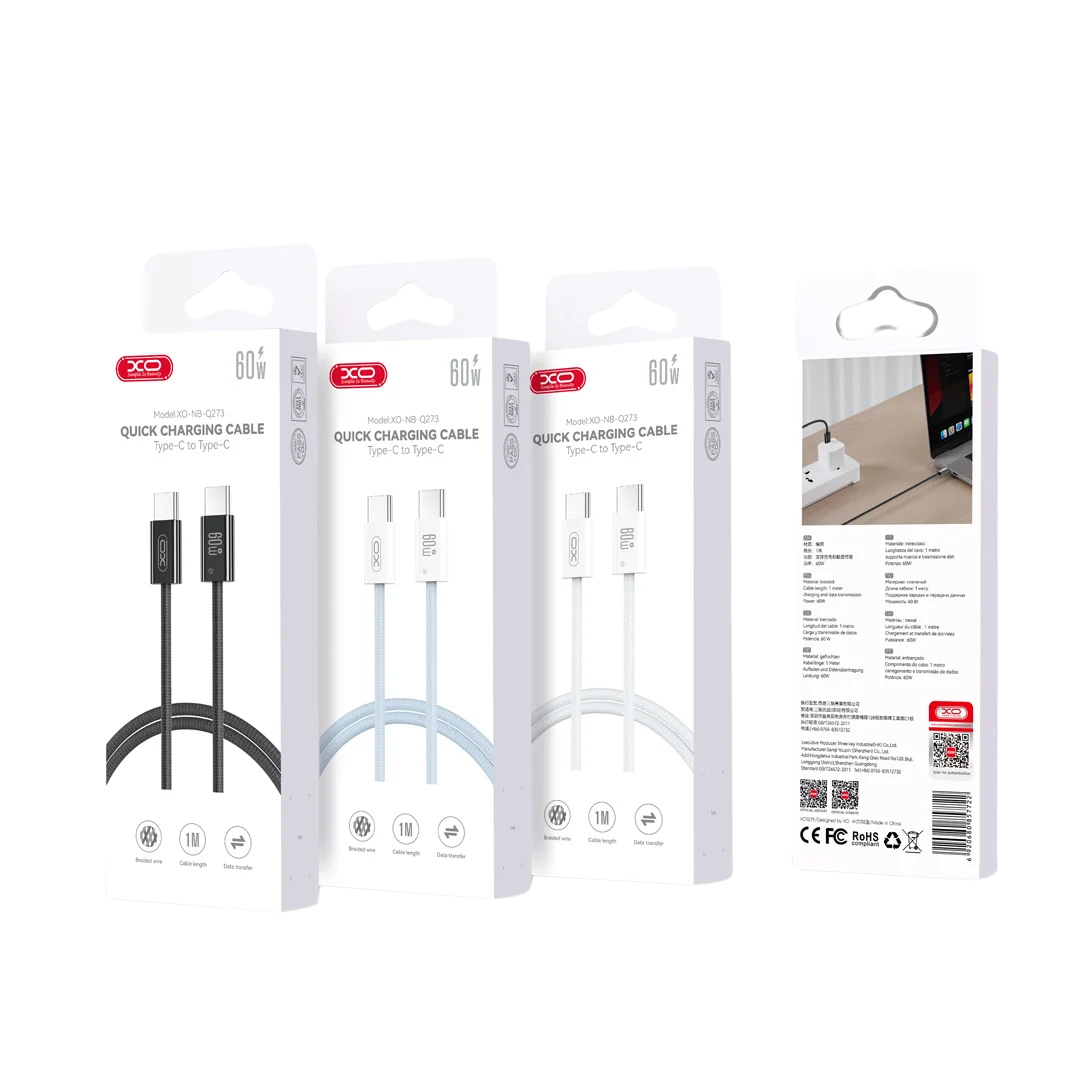 Puissance: 60W | Longueur: 1 Mètre | Type: Type-C à Type-C | Charge rapide | Transfert de données