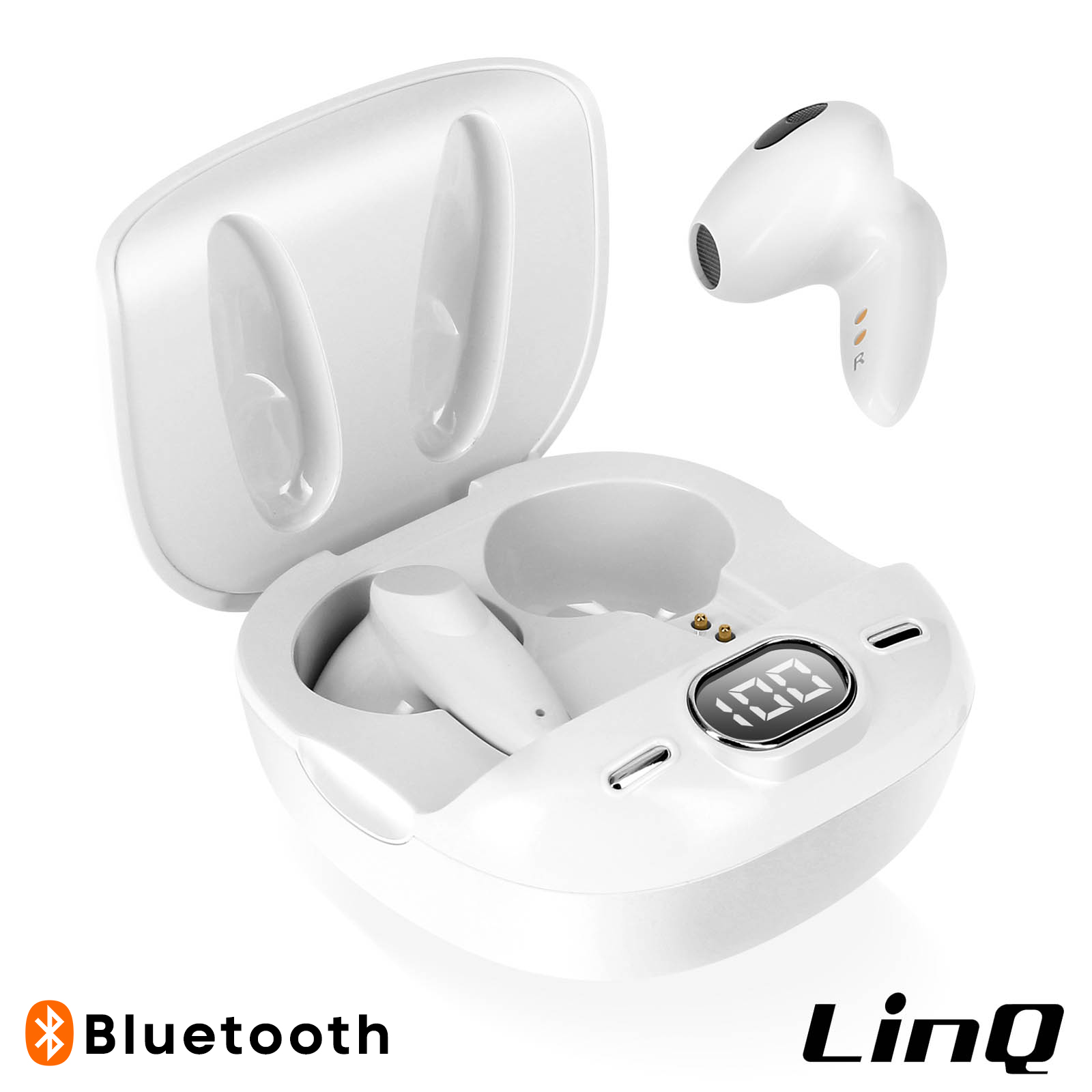 Écouteurs sans fil Bluetooth, Kit main libre + Commandes Tactiles, LinQ – Blanc