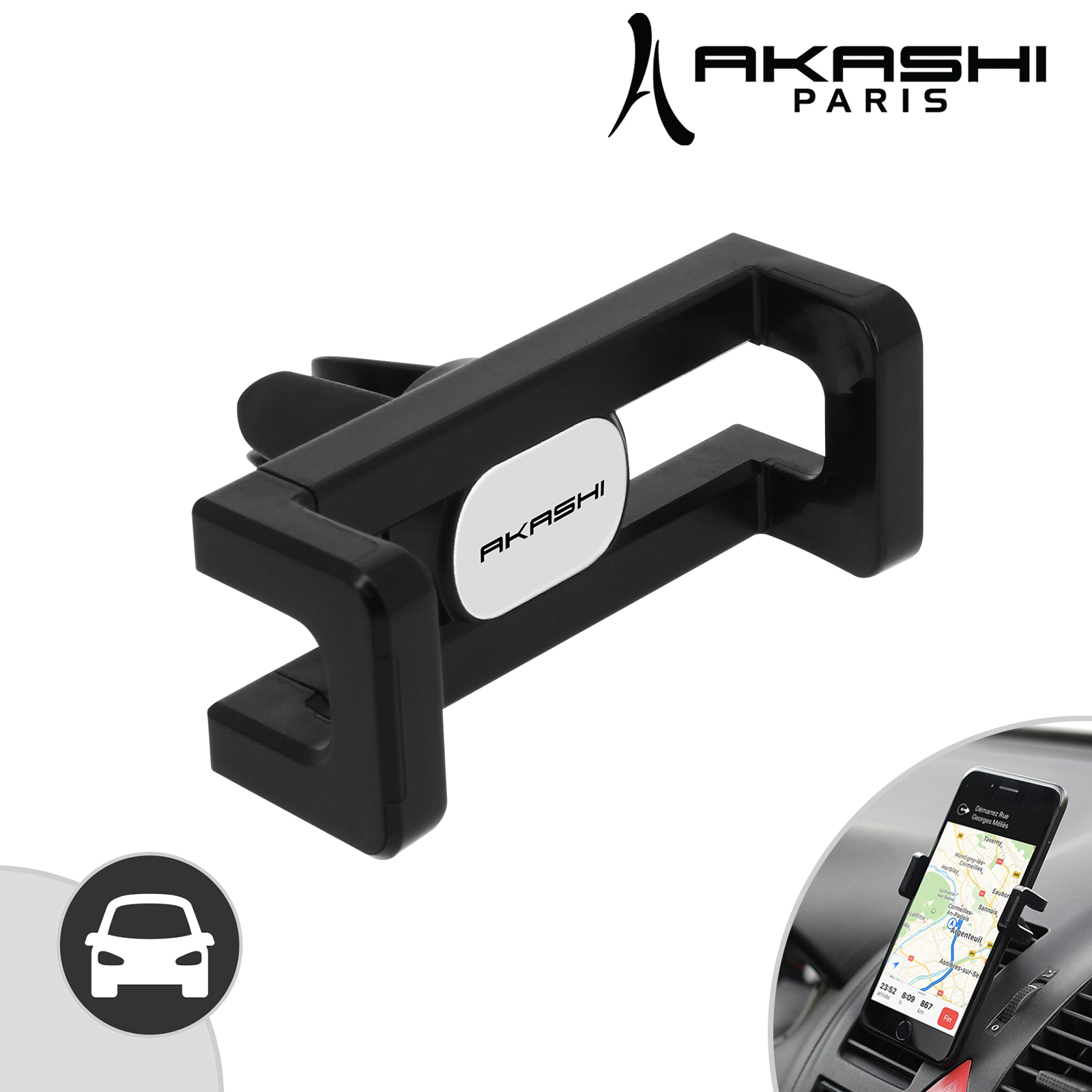 Support Voiture Smartphone 6,4”, fixation grille d’aération Akashi – Noir